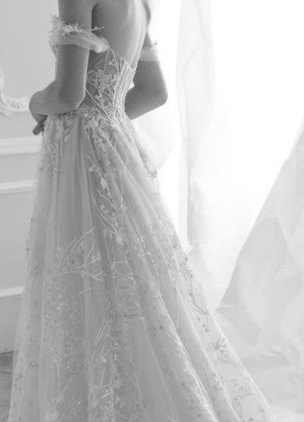 Une superbe robe de mariée nous a été envoyée par la mariée Hannah Johnson-Hughes, confectionnée avec amour par sa mamie. Le corsage en dentelle utilise la dentelle Guipure Guinevere.
