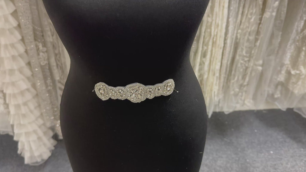Sublimez vos créations de robes de mariée ou de soirée avec ce petit motif orné de cristaux et de perles . Mesurant environ 13 cm x 4 cm , il est idéal pour agrémenter les ceintures, les bretelles ou les détails délicats des robes et des pièces de haute couture.